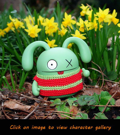 What kind of name is Ox? No, not like the animal Ox, as in HUG and KISS! How can he hug you with such short arms? Ox uses his ears! He's not a very good listener, but he puts his ears to good use in many other ways! Ox is great at magic, and his best trick is turning your stuff into his stuff. His best buddy Wedgehead calls that stealing, but Ox just wants to borrow things from you for a few hundred years. He promises to put everything back when he's done. What he wants to steal the most are kisses, whether they're in the chocolate variety or just plain, and he promises to be your friend if you would lend him a hand, or an ear...or like two dollars.