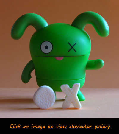 What kind of name is Ox? No, not like the animal Ox, as in HUG and KISS! How can he hug you with such short arms? Ox uses his ears! He's not a very good listener, but he puts his ears to good use in many other ways! Ox is great at magic, and his best trick is turning your stuff into his stuff. His best buddy Wedgehead calls that stealing, but Ox just wants to borrow things from you for a few hundred years. He promises to put everything back when he's done. What he wants to steal the most are kisses, whether they're in the chocolate variety or just plain, and he promises to be your friend if you would lend him a hand, or an ear...or like two dollars.