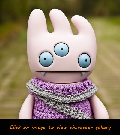 Tray is the brain of the bunch. Not because she is smart, but because she has three brains...one in each lump, or one per eye, as Babo likes to point out.  Tray is also the hungriest of all the Uglydolls, and has a desperate need for Blueberry Pie.  Some say her eyes are blue because of her craving for it.  Tray often combines her hunger for pie with her brainpower to talk Babo into getting food for her.  Unfortunately, Babo usually brings back a branch, a rock, or something even less tasty.  If you want to make Tray extra happy, sit her next to you in the subway, or in your car.  It makes her feel important.