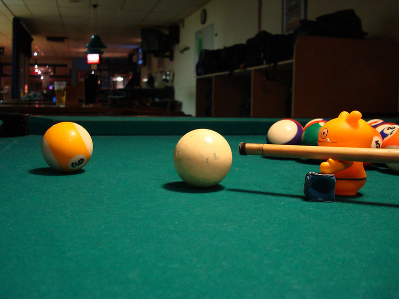 Wage does his best to line up a shot on the 9 ball.