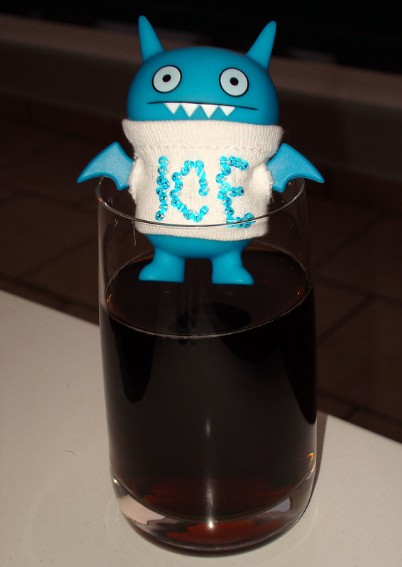 I sat down to enjoy a nice glass of coke only for Icebat (who's been in a funny mood all day since waking up) to come flying over and hover right above the coke while saying "with ice or without?"