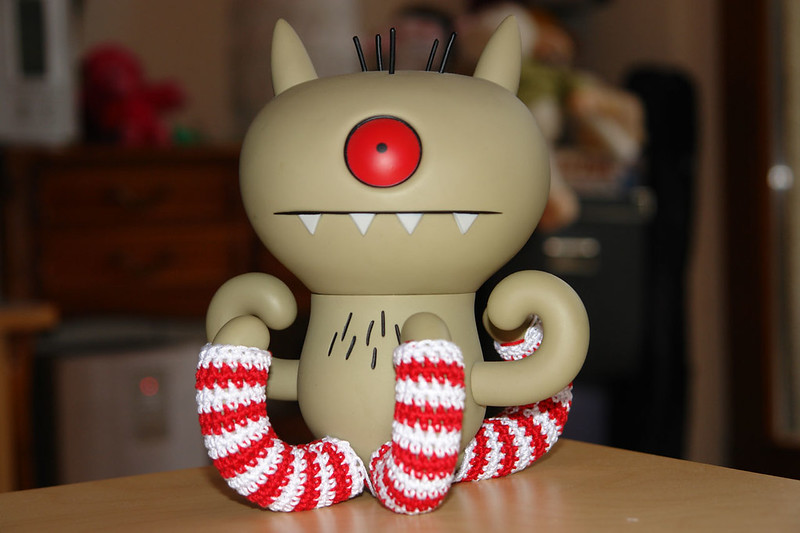 Target has been sniffing away most of the week since the weather turned decidedly colder over here in Aachen (we're hovering just above freezing in the mornings now), so Mireille decided to help him out by crocheting some socks to keep his feet warm.