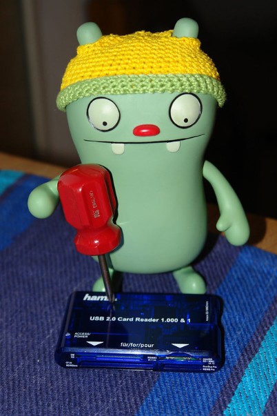 He returned with a philips screwdriver in his hand, and I didn't have the heart to tell him that there were no philips screws in the card reader for him to use it on -