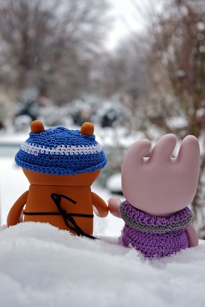 As she stood catching snowflakes on her hand and staring into the sky Wage quietly asked, "Is this space taken" while pointing to the patch of snow beside her. Tray replied, "Yes it is, or at least it's reserved....for you", at which point Wage moved in close and held her hand and they watched the snowflakes fall together.
