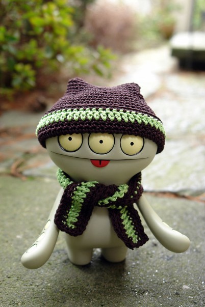 He was so happy that Mireille finished his "Choco & Minty" outfit during the week, which was such a perfect fit for him that he didn't even need to hold onto his hat while walking in the gale force winds.