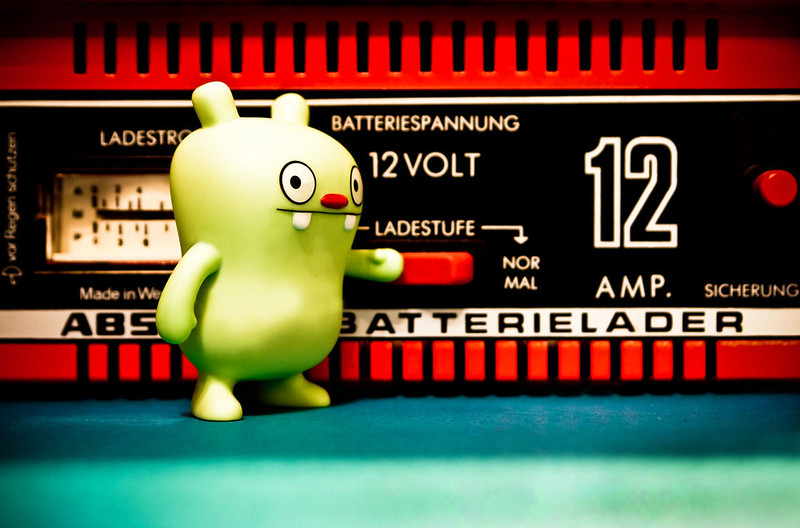 Once we had the battery out of the car and back into the house we started to connect it up to the battery charger to breath some life back into it, Jeero asked how long it would take to be ready to use again to which I said 24-