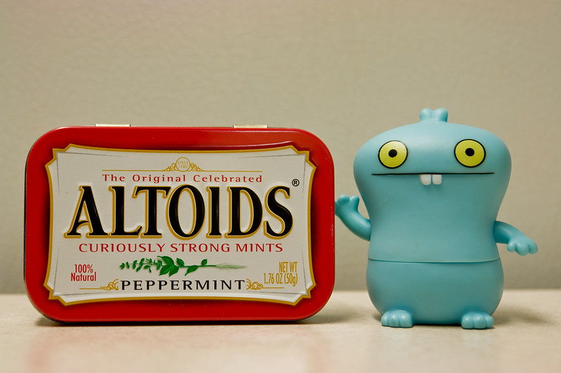 "Altoids is well knowns for beings MEGA minty, ands they always says 'curiously' in their advertisings slogans, so I wants to use the logic of curiousity catched the cat".