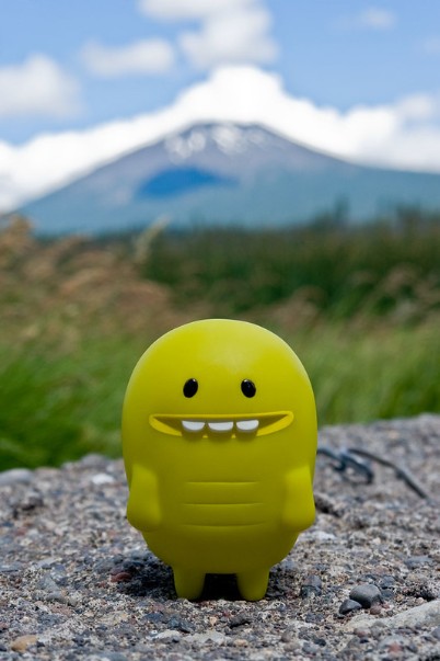 Here's the little guy sporting his trademark cheeky grin in front of his favourite volcano of the day, Mount Bachelor.