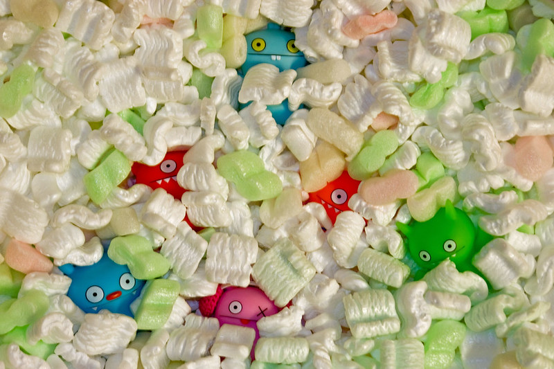It doesn't seem to matter if a new box arrives for my attention when I'm at home or staying in a hotel, there appears to be some strange habit written deep in the code of all Uglydolls that makes them completely obsessed with packing quavers material.