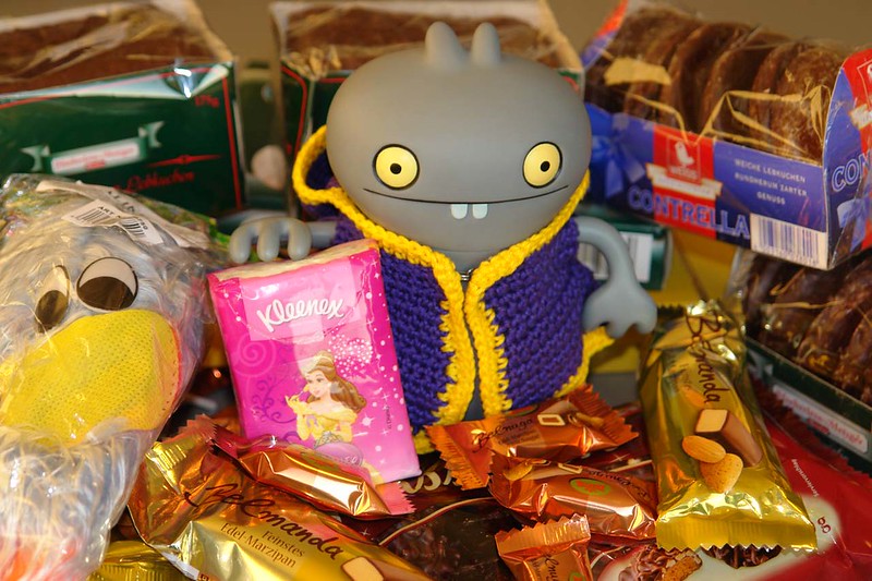 As you can probably tells, Mireille said she would shows me how to go completely mentals for Karneval, and oh boy she dids, but in a goods way as the peoples on the truckers gets so much a laugher at her that they throws so much stuffs in my directions and thankfullies Baz was on handers to stores it alls away in a bags for me.