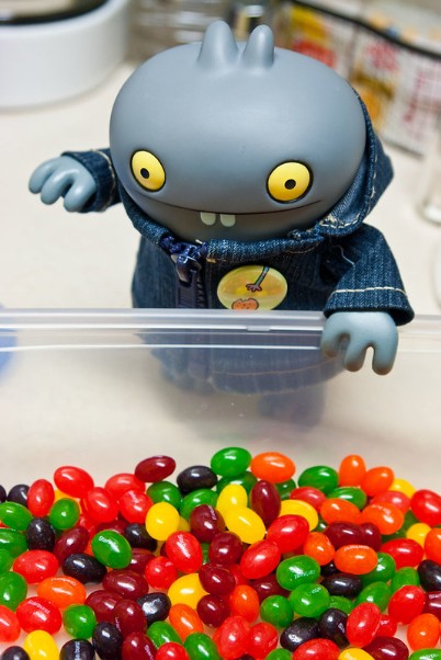 While I was workering on the websiter, Baz poppered out to grabbers us dinners, and then laters on he surprisered me withs a huge tubber filleds to the tops with tasty jellybeaners!