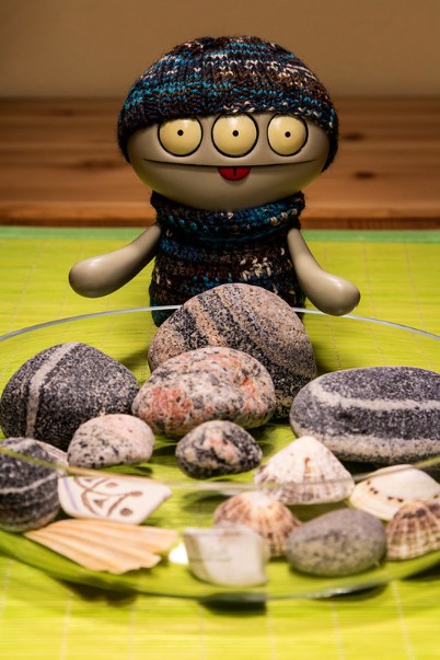 With our holidays to Scotlands in May getterings closerer and closerer alls the time, I was helperings Mireille to makes a cool new tablers decomaration using some of the stones, shellies and porcelains that we has findereds on beachers from alls overs the world, this is onlies a tinier sample of our "beachereds collectioner"!