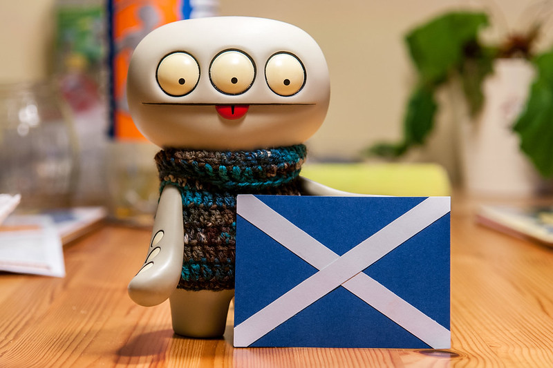 I cames up with a perfecters thing to makes her smile when she thinkers about me and Baz in China, a Scottishers flag which she can has besides her computers to helps her thinks of all the super coolers places we visitereds together on holimadays!