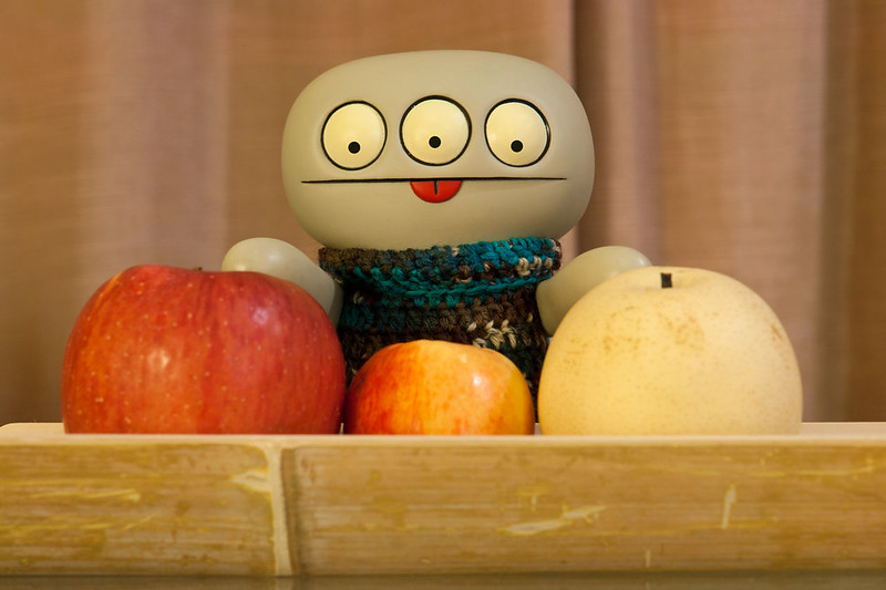 This evenings there was a knocker at the hotels room door and when I answereds it there was a roomservicer standerings there holdings this woodens tray with three differents applers in it.