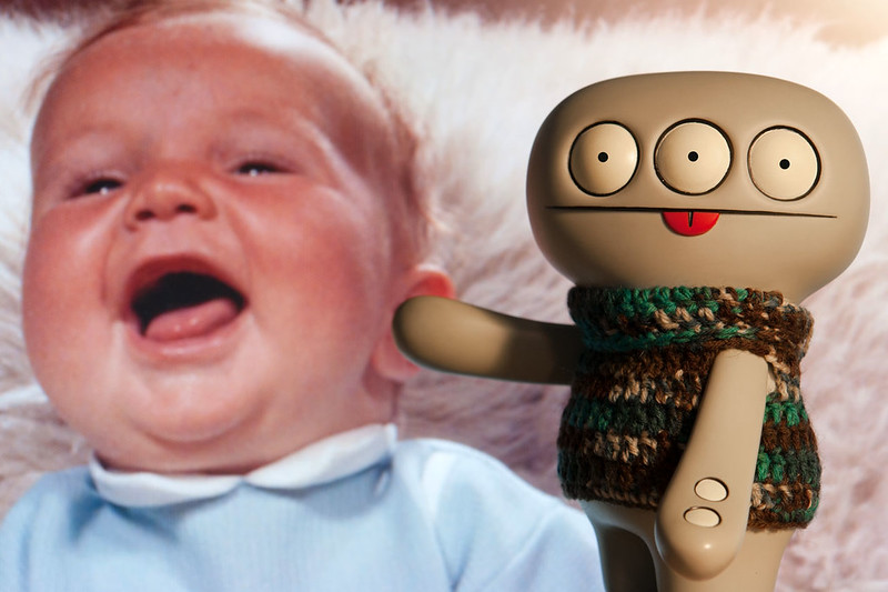 Just waits until he sees the photomagraph that I findereds of him when he was a laugherings baby, and I mades sure I linereds my flipper ups to makes it look like my flipper pokings into his ear is makings him laugh!
