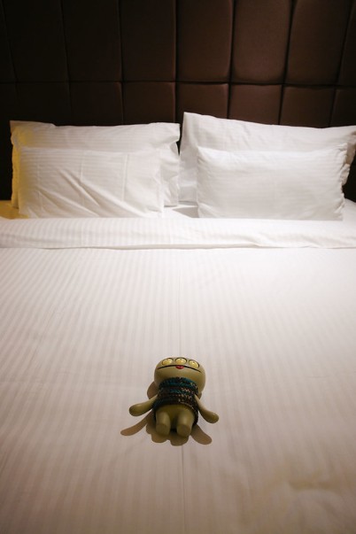 One of the things I enjoyers the mosts is when Baz headers off to workies, then I has the whole hotels roomer to myself, I can starfishers the bed as much as I wants and not have to deals with any complainerings!