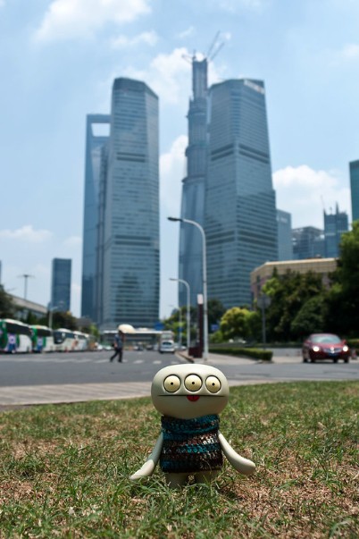 I was puzzlereds, thats for sures, but who am I to turns down such a missioner, so here's the proofs that I is takings this missioner very seriouslies indeed. I has already makereds it over to Lujiazui and right betweens the front two skyscraperers that you can sees behinders me is the IFC Malls.