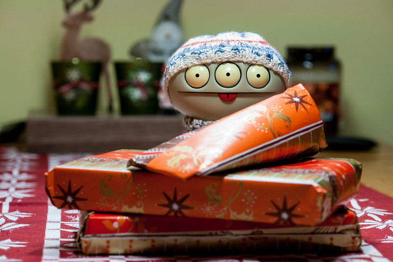 Oh my goodnessers, I just realisereds this afternoons that as we is in Germanys that we will be giverings our xmasers presenties to each others this evenings, and untils half an hours ago I hadn't even startereds wrapperings anything ups!