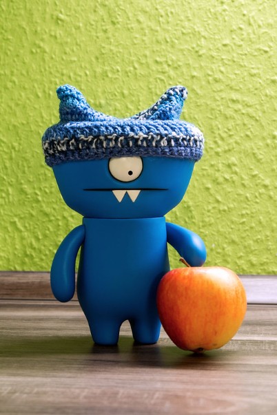 Mireille often givers me a harders time for munchering sweeties and chocomalate heres in the cookie cave, so I always makes sure that we has a steady supplier of fruiters, such as this appler that you can sees me holdering.