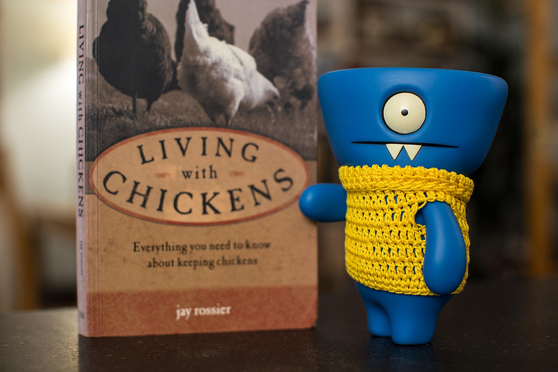 Our hostesser was kinds enough to gives me this booker to reads, which supposedlies will tellers me all I needs to knows to lives with chickens too!