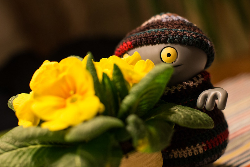 Beings the gentlesman that I is, I pickereds up some flowers earlier to gives to her when she arrivers!